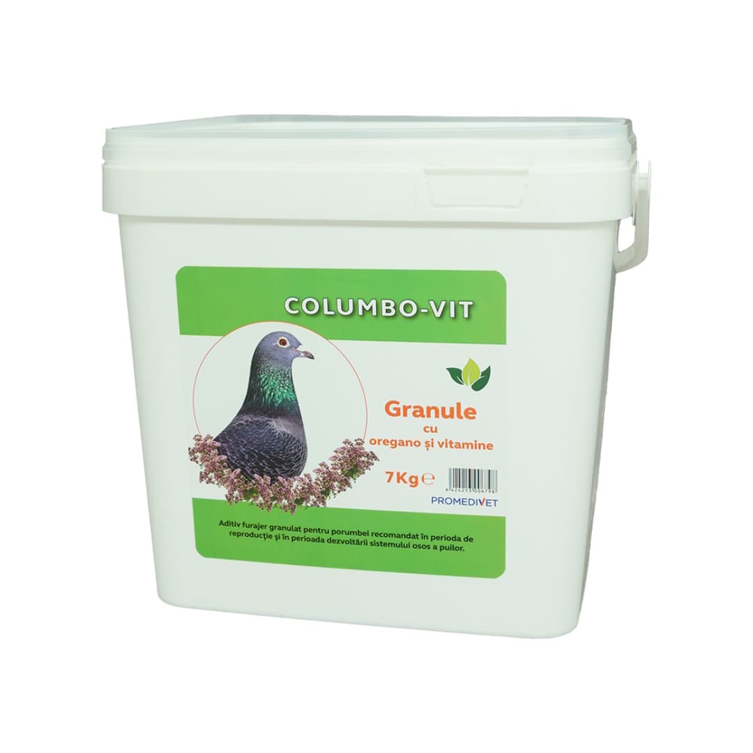 Columbo-Vit Granule con Orégano es una vitamina para palomas, ideal para reproducción y desarrollo óseo, mejorando salud y sistema inmunológico.