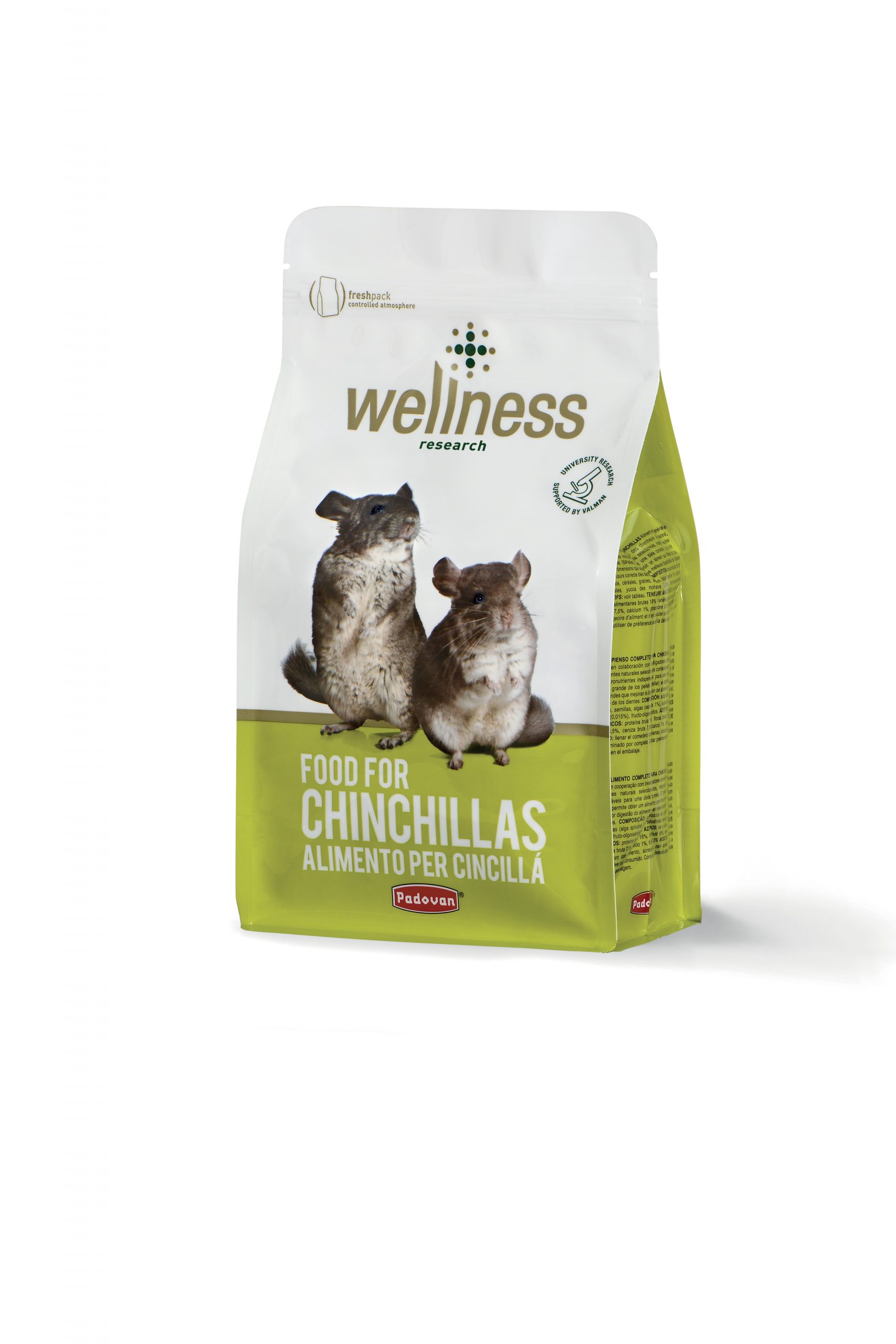 Wellness para chinchillas es un alimento formulado para cubrir todas las necesidades nutricionales de esta especie. Su formato en pellets de fibra larga facilita la digestión y contribuye al desgaste adecuado de los dientes, algo fundamental en animales con crecimiento dental continuo.