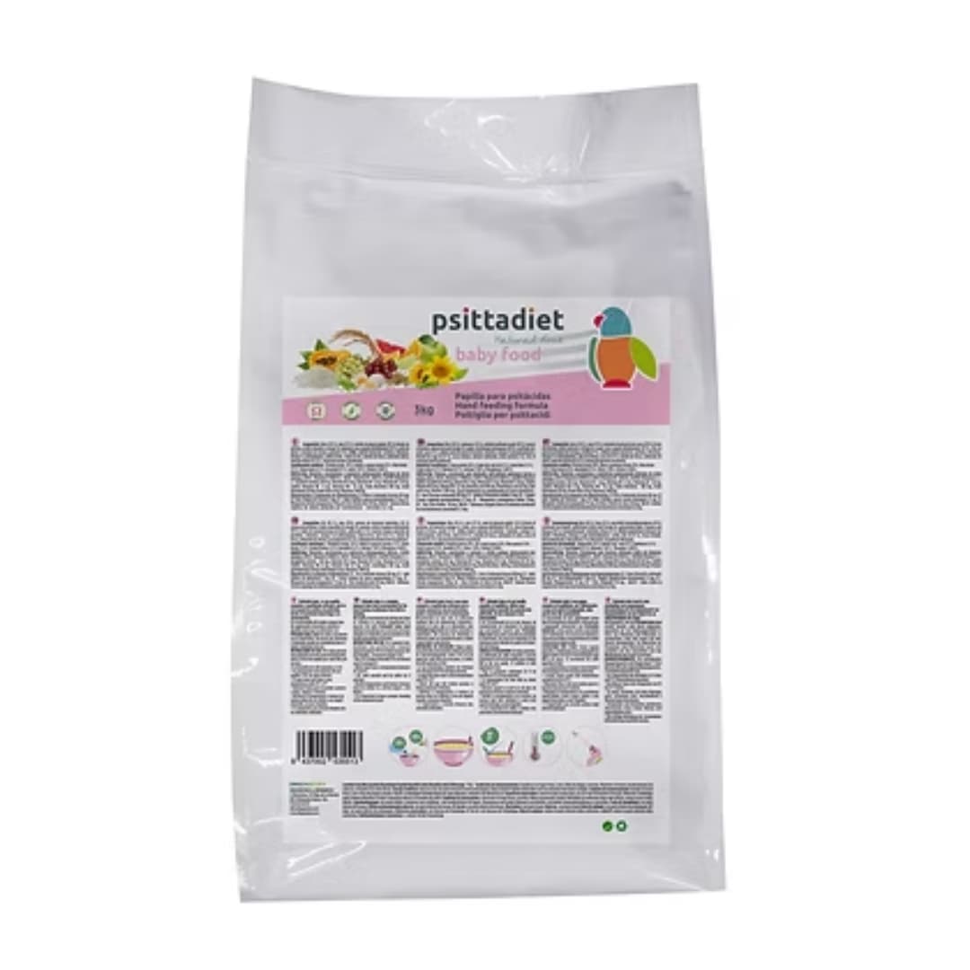 Psittadiet Papilla Baby Food es una papilla especialmente formulada para proporcionar una nutrición completa y equilibrada a los polluelos de aves jóvenes. Ideal para la cría manual de psitácidas desde el momento de la eclosión hasta su independencia.