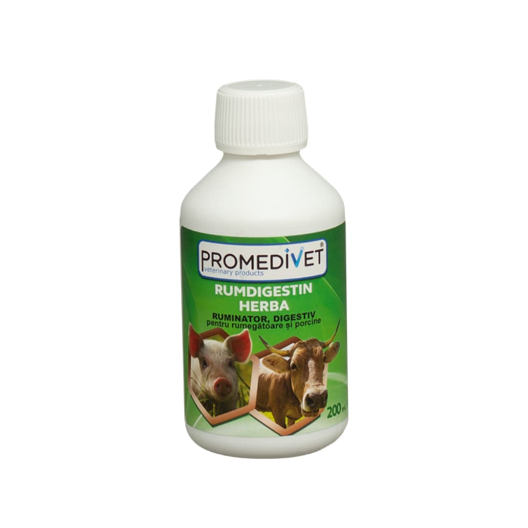 Rumdigestina Herba es un suplemento natural formulado con extractos hidroalcohólicos de plantas medicinales seleccionadas por sus efectos beneficiosos sobre el sistema digestivo. Sus propiedades estomacales, digestivas y tónico-amargas mejoran la motilidad del tubo digestivo, estimulan las secreciones hepáticas y digestivas, y normalizan la microflora en rumiantes y cerdos.